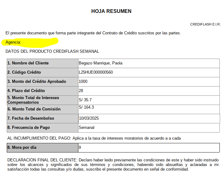 En la HOJA RESUMEN la agencia esta apareciendo vacio