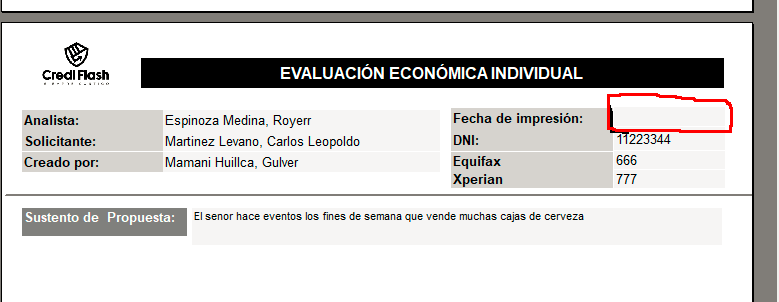 En la ficha de evaluación la fecha de impresión no esta apareciendo