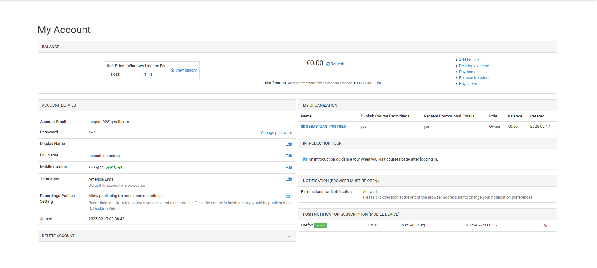 El perfil del usuario donde se mostrara su información básica y privada.